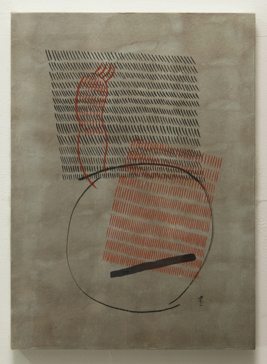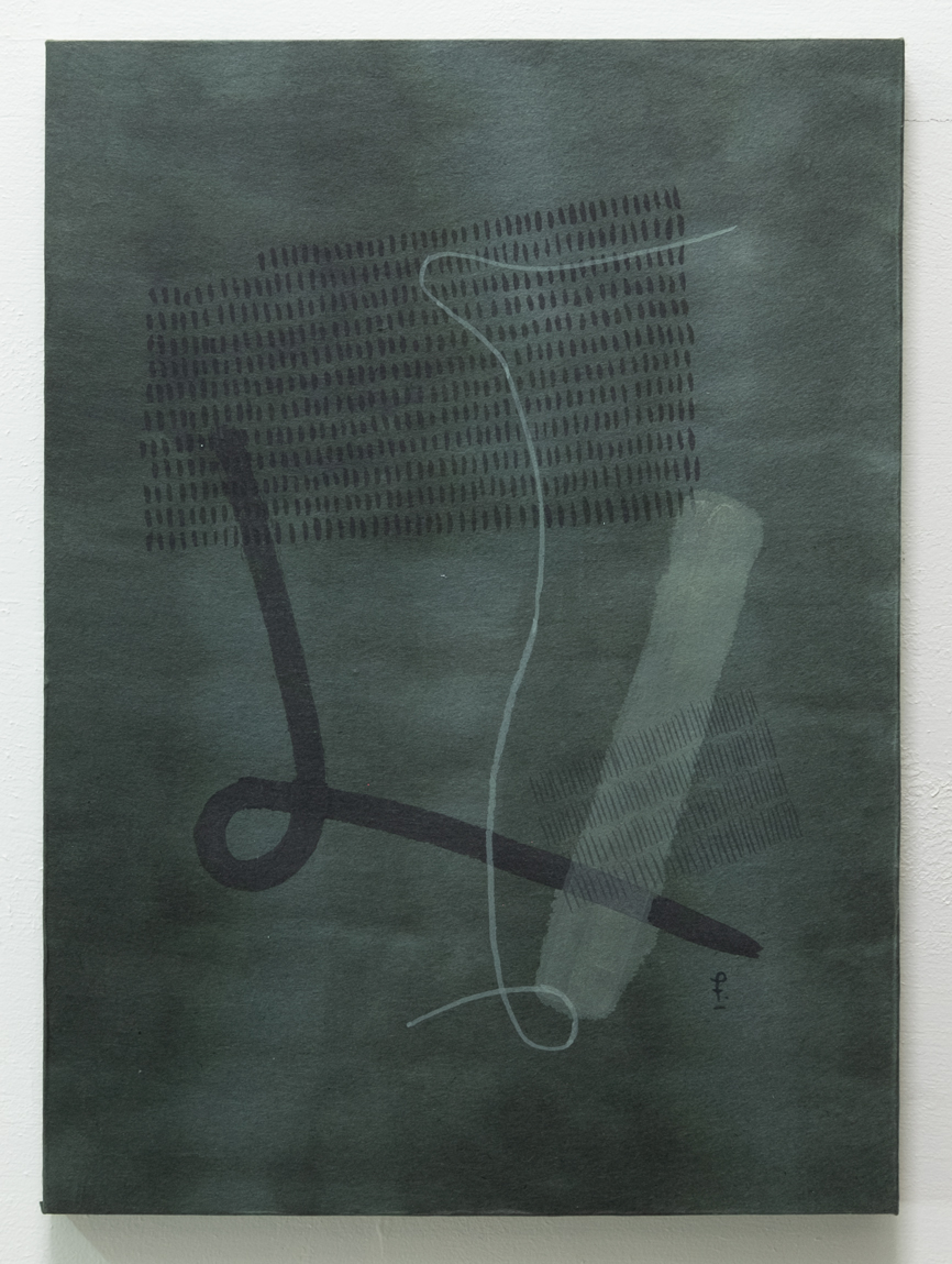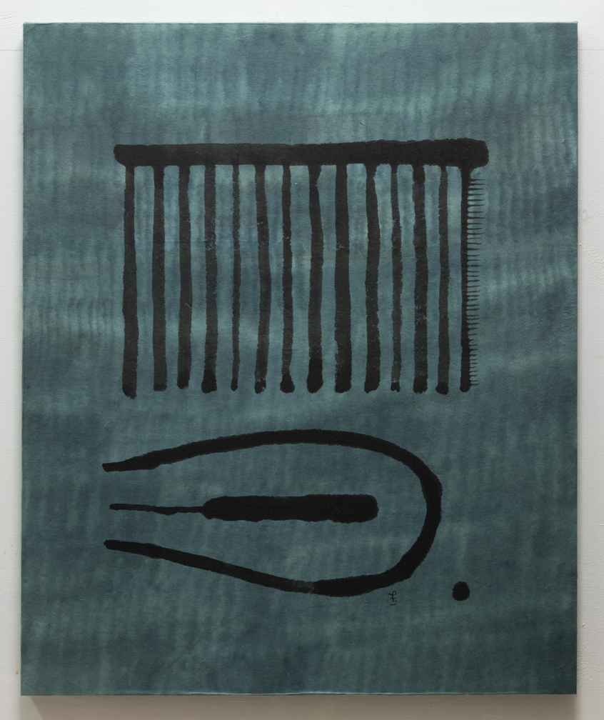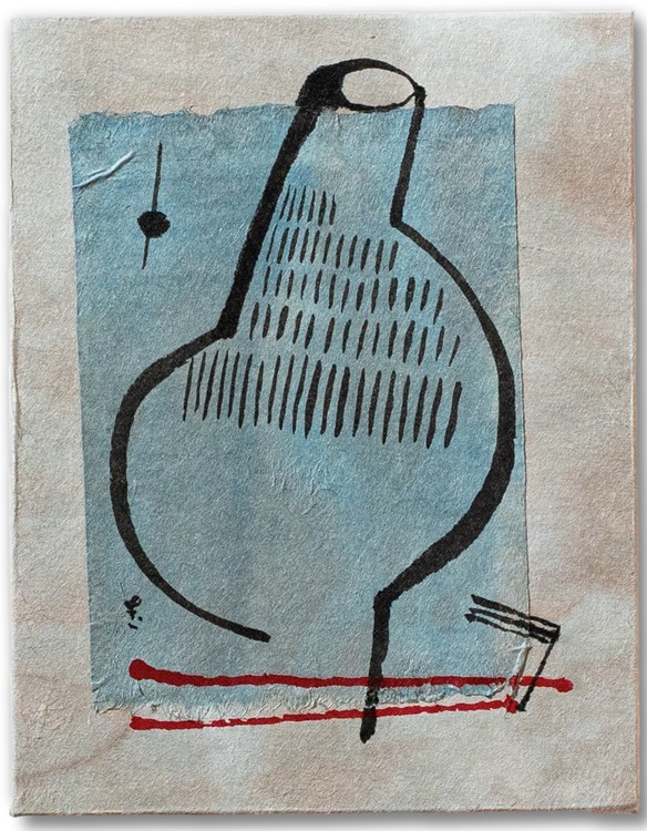 ズボンのようなヘラのような / キャンバス、手染め和紙重ね貼り、墨 180mm×140mm 2024