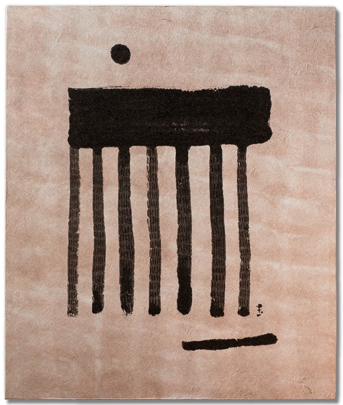 いのの山にある根 / 木製パネル、手染め和紙、墨 380mm×455mm 2023