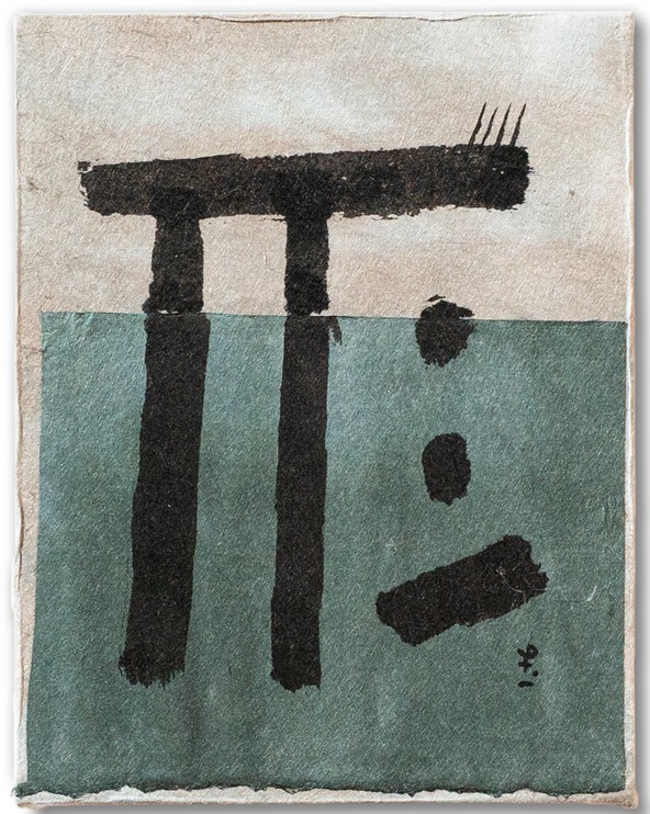 TENSENBO / 木製パネル、手染め和紙、墨、アクリル絵の具 242mm×333mm 2023