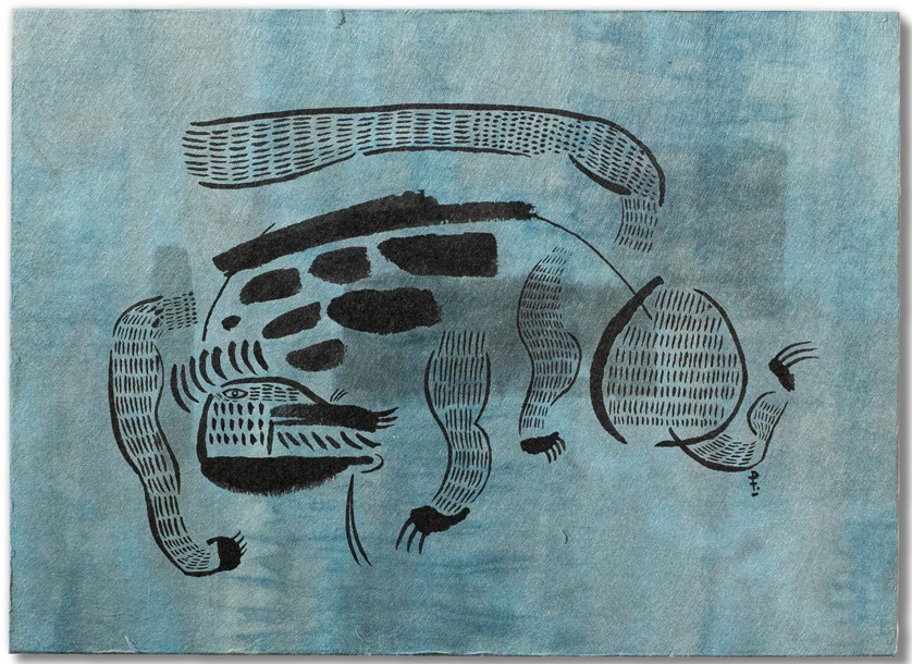 いののオイノ / 木製パネル、手染め和紙、墨 333mm×242mm 2023